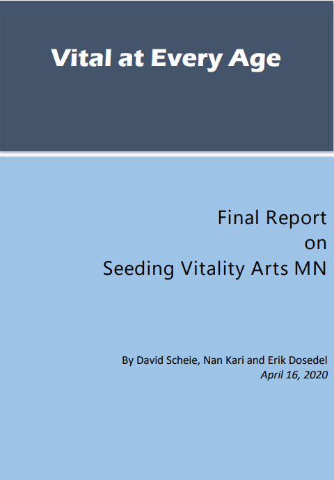 Seeding Vitality Arts MN was a demonstration efforts of Aroha Philanthropies that ran from 2016-2020. Its goals were to 1) demonstrate the power and impact of creative aging programs to a national audience; 2) encourage arts and cultural organizations to develop participatory arts education programs for older adults; 3) encourage organizations that serve older adults to develop arts education programs; and 4) refine and disseminate effective program models. Aroha seeks to replace the ageist cultural narrative that views aging as decline and older adults as burdensome with one that recognizes older age as a season of learning, creativity and vitality.